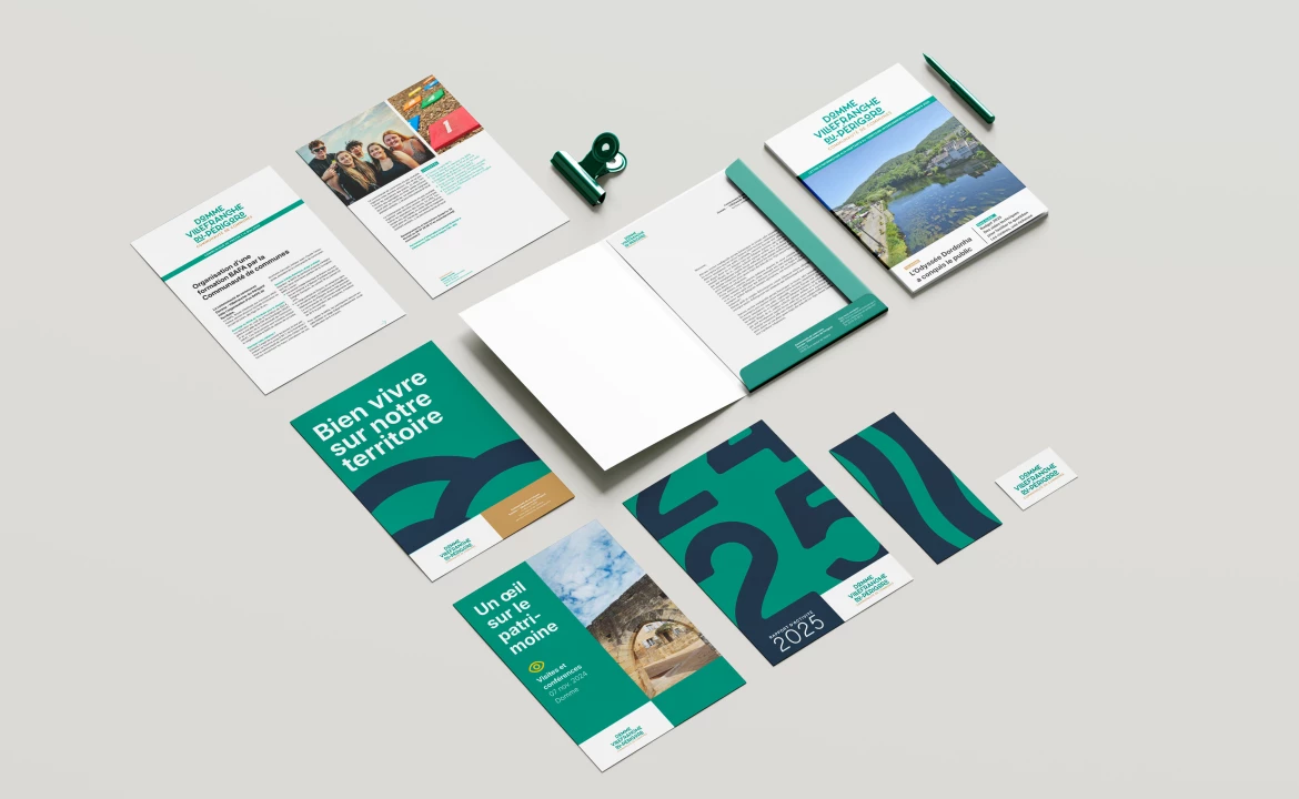 Un projet à la fois global et modulaire : il s’agissait de concevoir l’identité visuelle de l’EPCI ainsi que celle des différentes entités qui la composent, en développant un univers graphique commun. L’enjeu : garantir une cohérence d’ensemble tout en permettant à chaque structure de se distinguer visuellement.