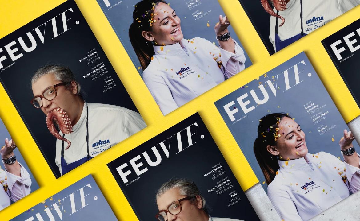 Conception et réalisation de l'identité visuelle du magazine Feu Vif édité par Lavazza.