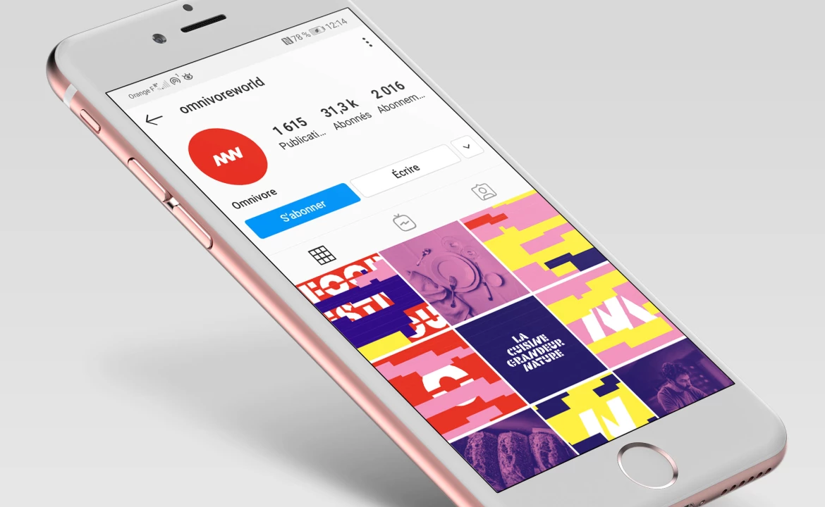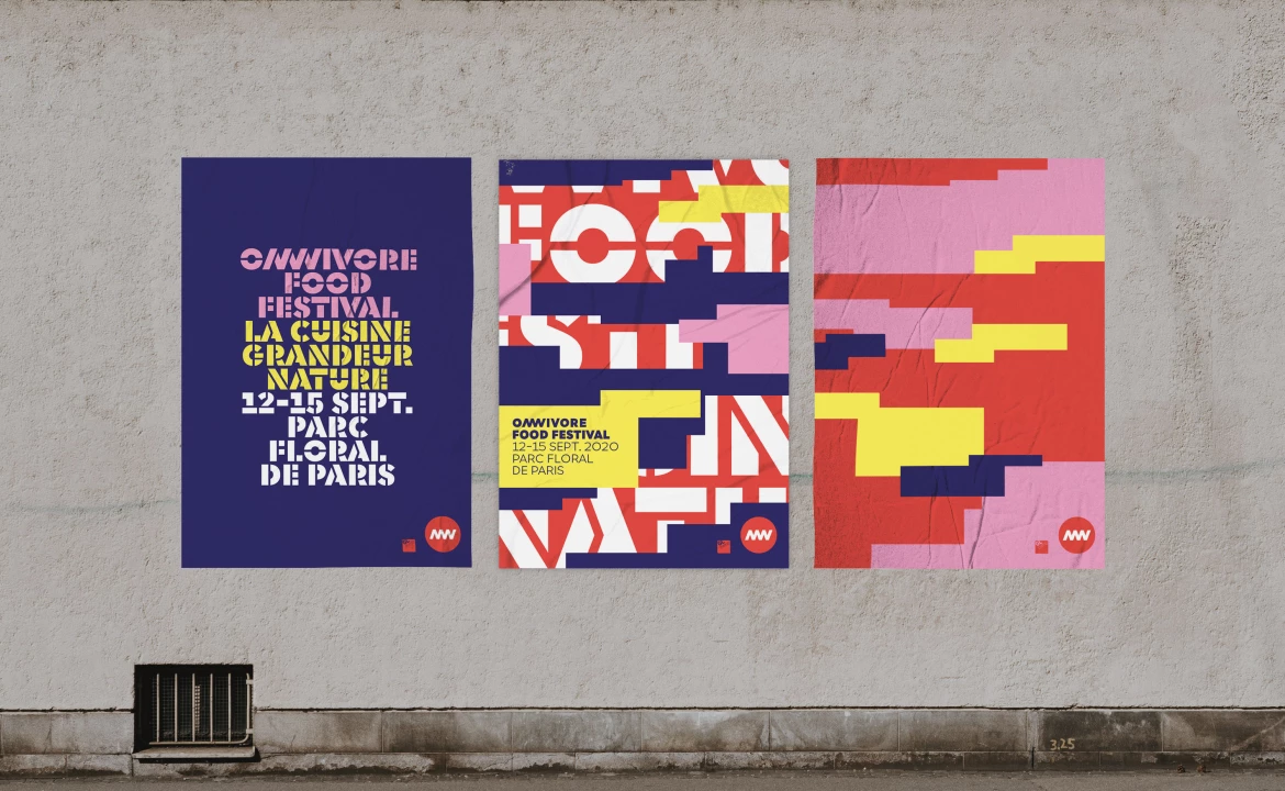 Conception et réalisation de l'identité visuelle du Festival Omnivore, déclinée sur l'ensemble des supports de communication : signalétique, stands partenaires, affiches, totems, flyers, et plus encore.