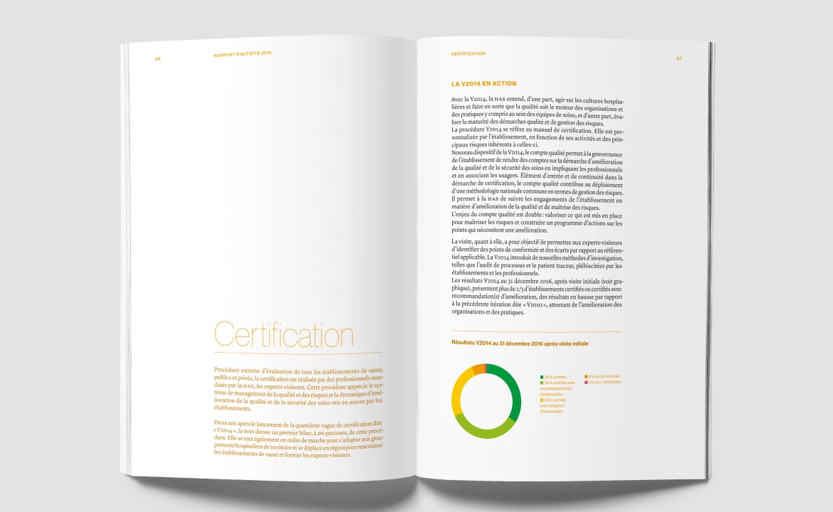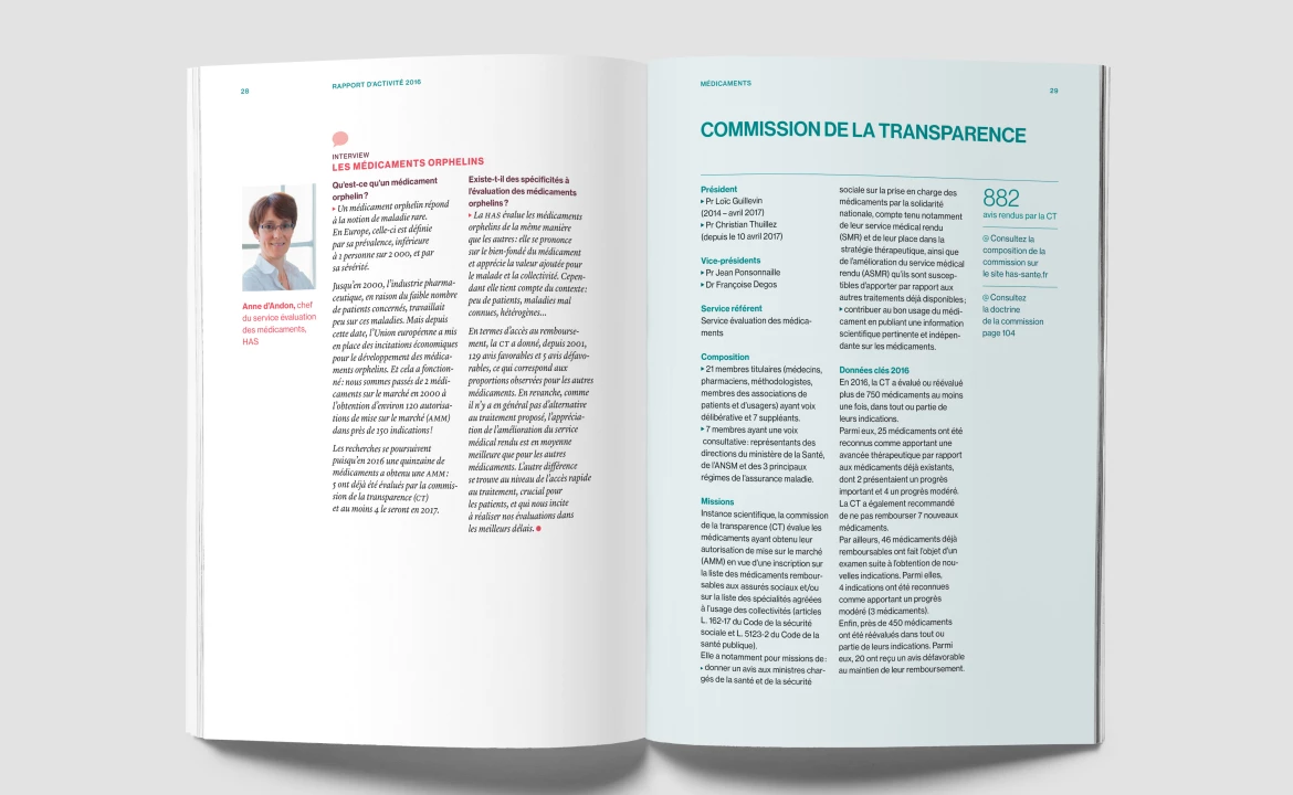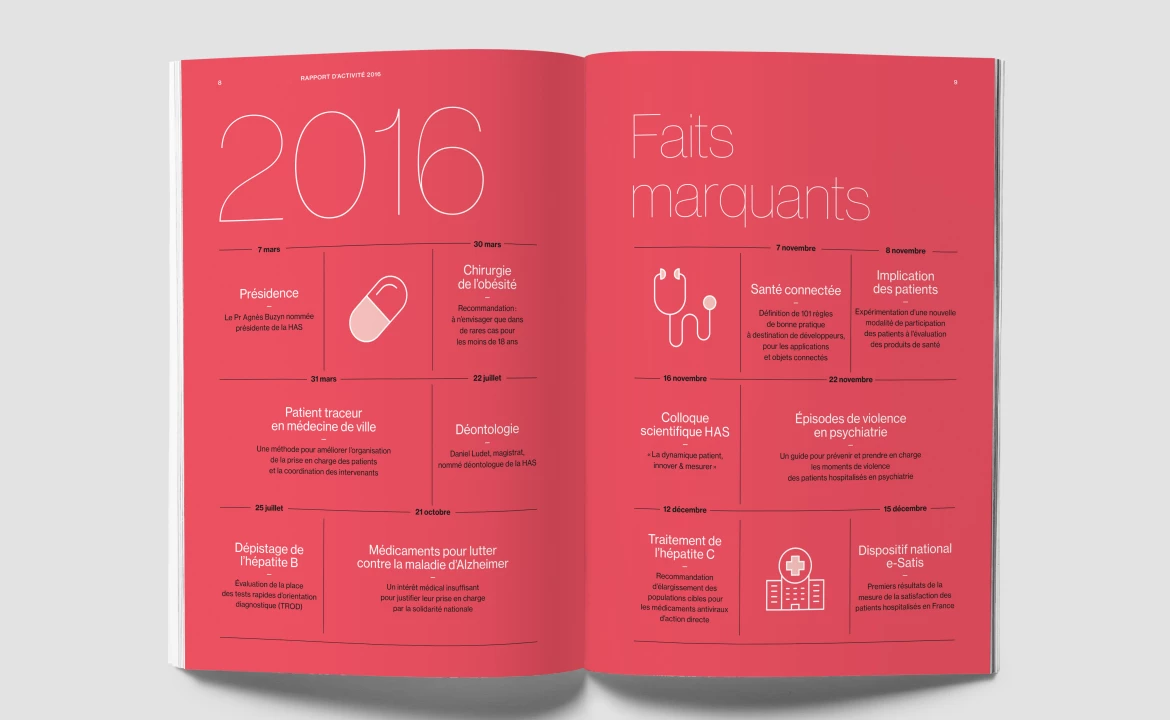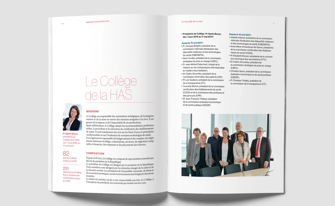 Conception et réalisation de la maquette du Rapport d'activité 2016 de la HAS.
