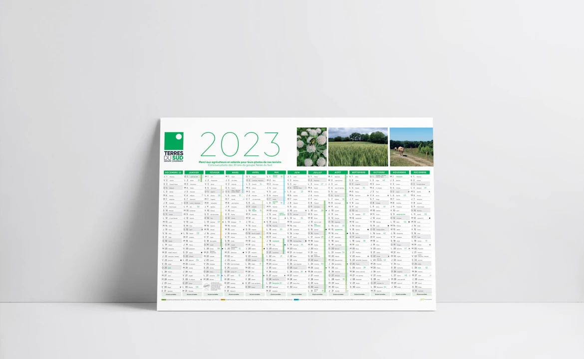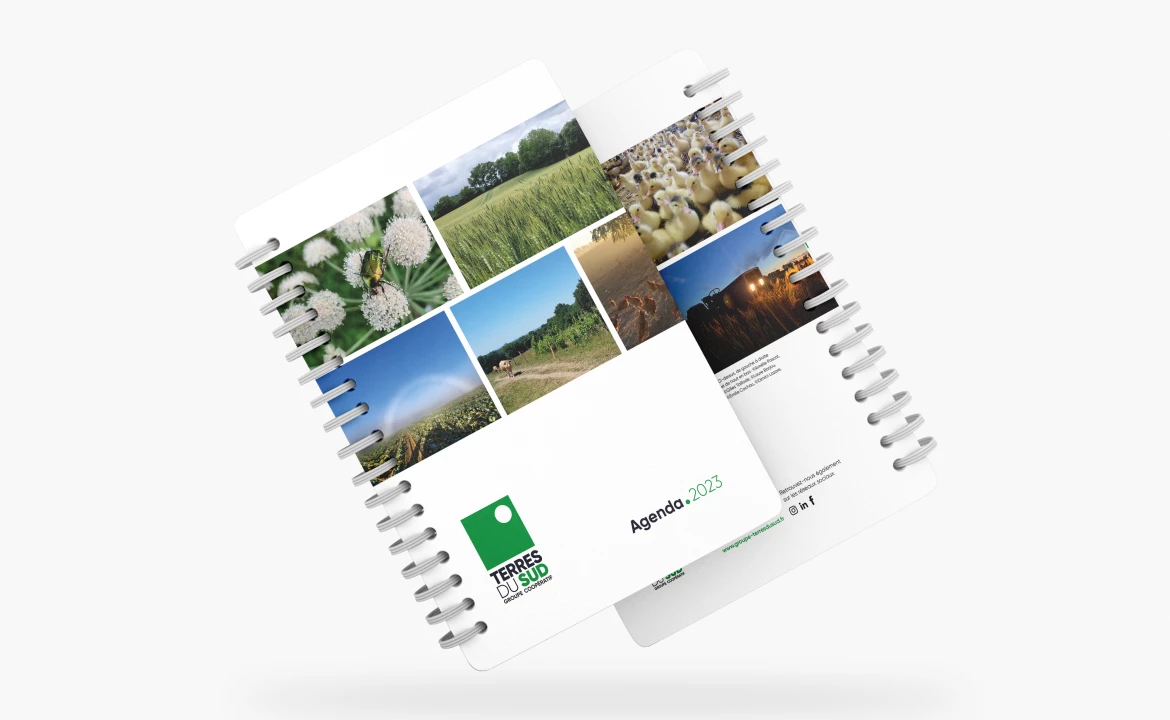 Conception et réalisation de calendriers et agendas pour Terres du Sud et Agrifeel,